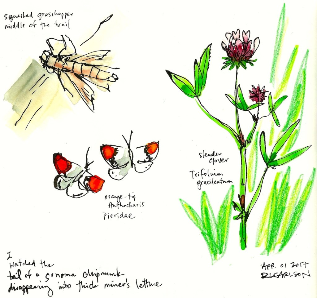 There were lovely patches of fiddleneck (Amsinckia menziesii) and abundant wild cucumber fruits (Marah fabaceus).