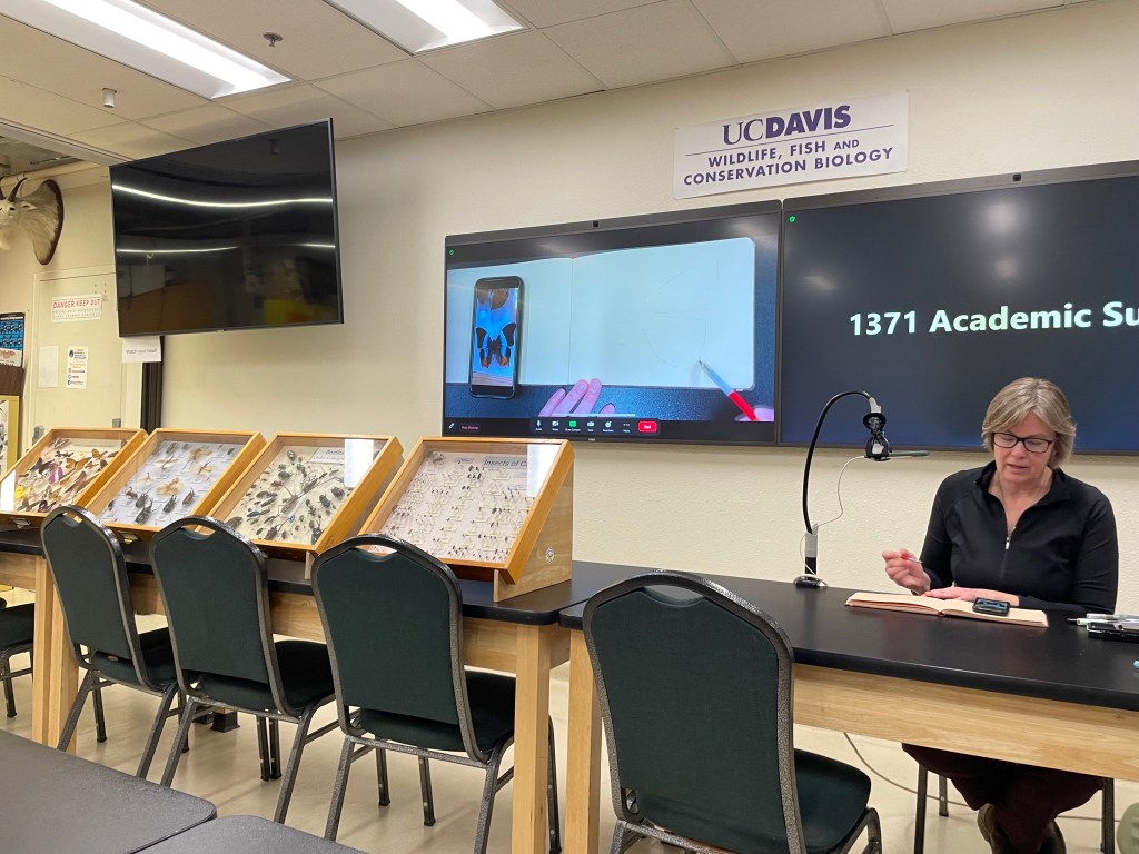 We used specimens from the Bohart Museum of Entomology teaching collections. I demonstrated sketching a violet-banded palla, and Marni demonstrated a flower chafer.