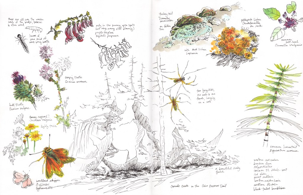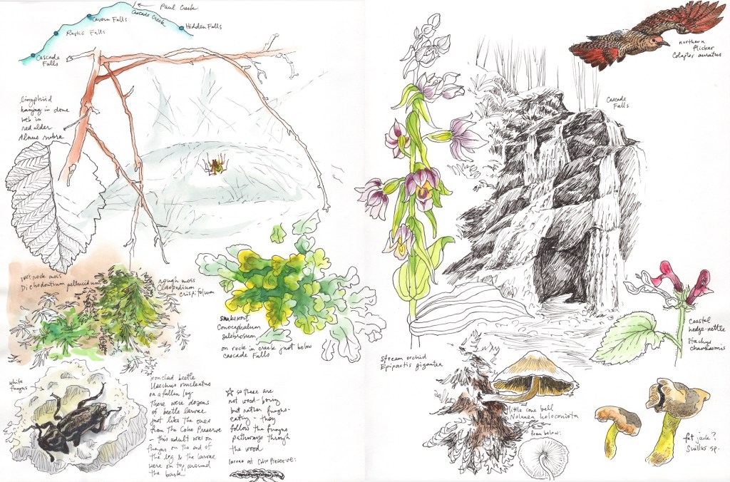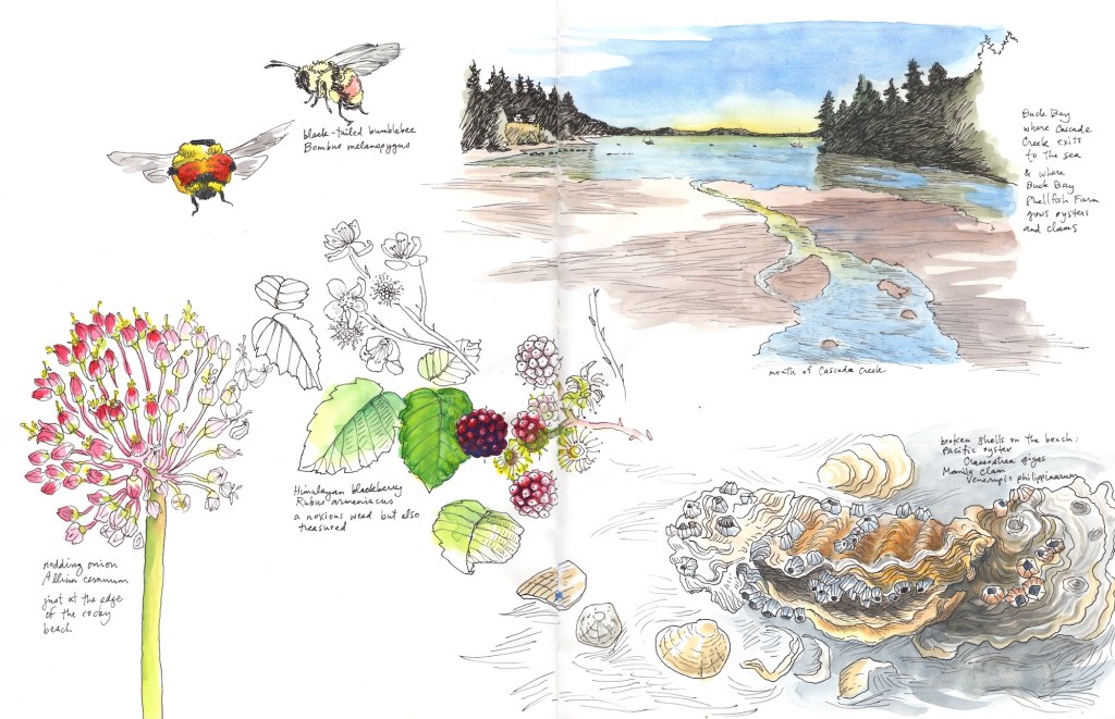 In August 2019, I spent a few days on Orcas Island getting to know the Cascade Creek Watershed at the invitation of Ayn Gailey and Sara Farish, authors of the just published Ode Volume One: Orcas Island. Having seen my Orcas sketchbook pages on Instagram (@anthropocenesketchbook), they wanted to include a few of my drawings in the book. This project turned out to be a wonderful opportunity to put together an ecosystem exploration in cohesive set of drawings.